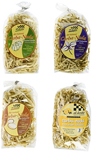 - Fettuccine: One 10-oz package of each: Basil, Egg, Roasted Garlic, and Lemon Pepper. Try all of Al Dente's Carba-Nada pastas delivered to your door in one convenient box.